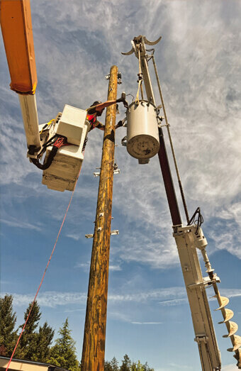 We install and connect equipment on private poles including transformers, switchgear, and communications equipment with proper mounting and safety systems.